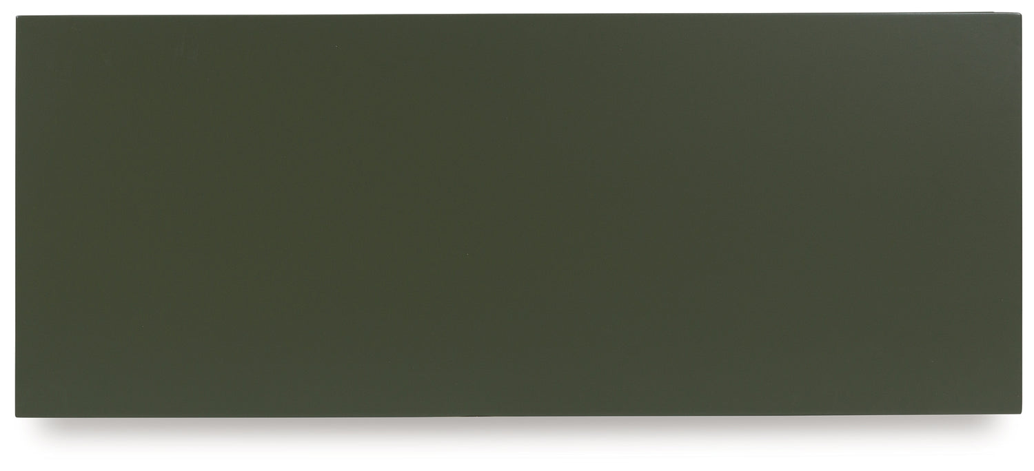 This accent cabinet makes a big impact with just one piece. Its intricately patterned doors impress with their dimension, while the dark green finish and sleek goldtone handles add a touch of modern elegance. Adjustable shelves add everyday functionality to this sophisticated yet approachable piece.