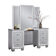 Glamour reigns in the design of the Allura Collection. Alligator embossing and high polished crystal-enhanced hardware boldly accent the finish of the vanity dresser and mirror.