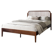 The Soma Platform Spindle Queen Bed in Walnut adds timeless charm and modern warmth to any bedroom. Its rich walnut finish highlights the natural wood grain, while clean lines and slatted spindles create a striking mid-century focal point. Designed for versatility, this platform bed features a 12-slat roll-out support system that eliminates the need for a box spring, ensuring lasting stability and a sleek, low-profile silhouette.