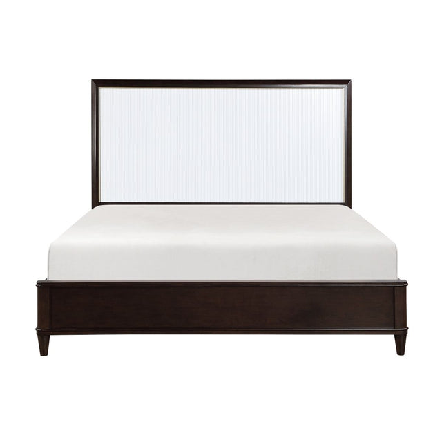 Tasked with executing a design that encompasses the trademarks of contemporary design while including hints at a glamorous lifestyle, the Niles Collection perfects the look. Routed panels front the headboard while framing and gold-finished trim provide further accent. The low-profile footboard of the bed provides an unencumbered view of the panel headboard.