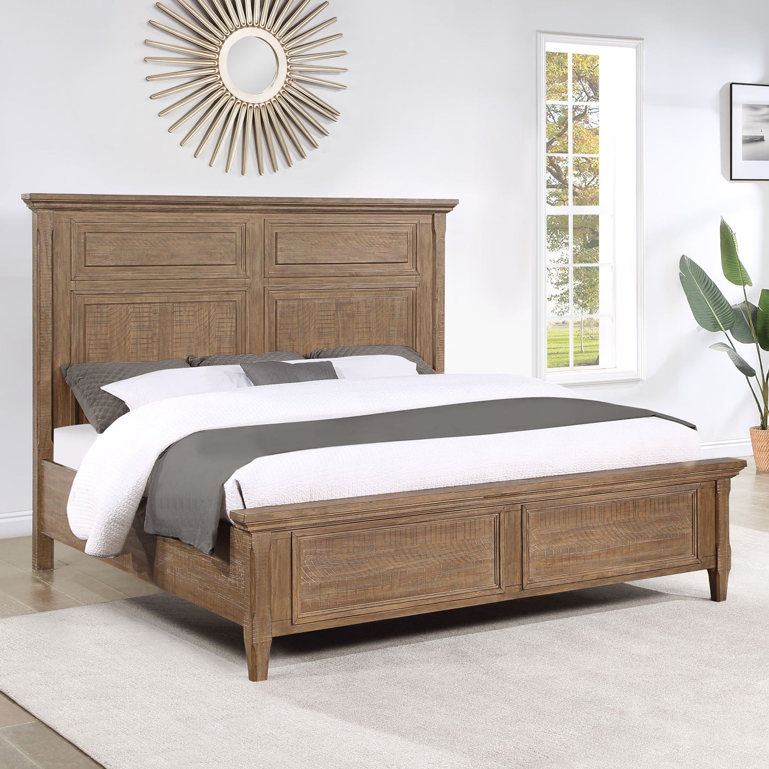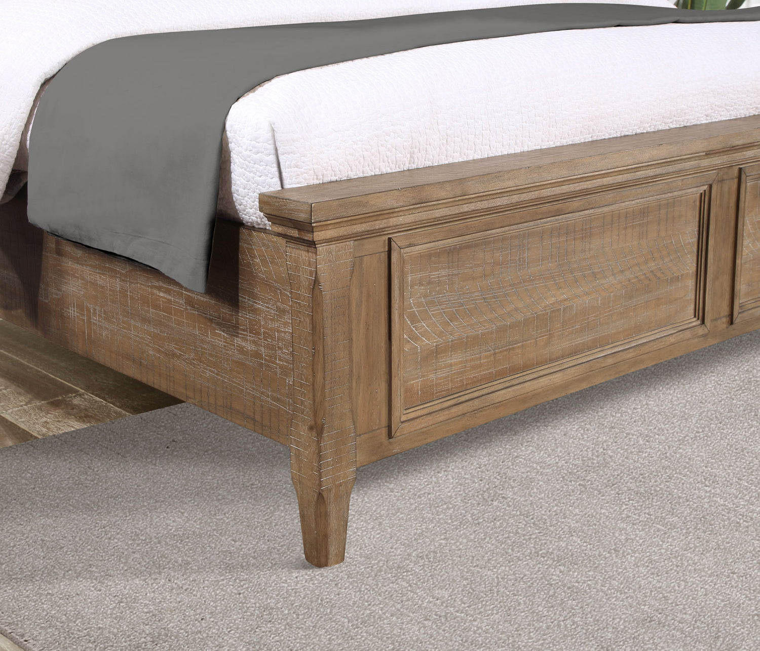 Experience the perfect blend of rustic design and refined style with the Panel Bed from the Riverdale collection. With a beveled headboard and picture frame footboard, this bed exudes rustic charm and modern elegance, enhanced by a distressed finish that adds character and warmth. The substantial top rail and tapered legs provide a sturdy and durable foundation, while the mix of materials creates a unique and inviting atmosphere. Â the embodiment of Modern Ranch design at its finest. Experience the perfect blend of comfort and style with the Riverdale Panel Bed and indulge in a restful night's sleep in this one-of-a-kind Modern Ranch bed.