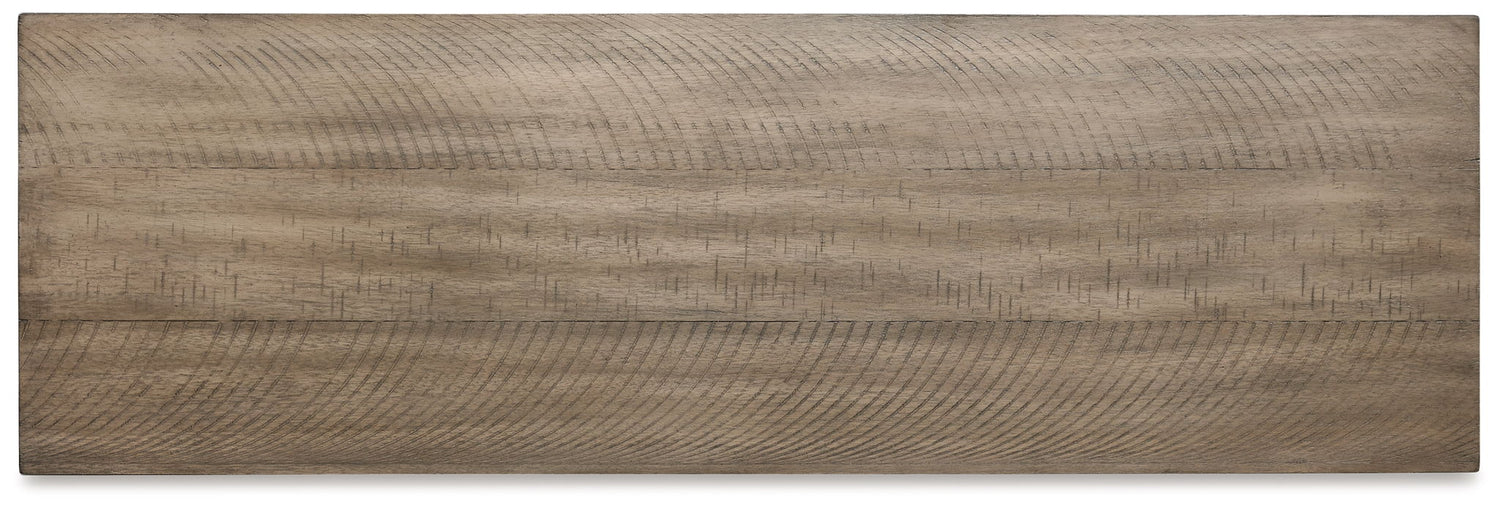 - Distressed grayish white finish