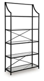 This bookcase proves that traditional designs are simply timeless. Five spacious glass shelves offer plenty of room to display today's meaningful mementos and awesome accessories. With a classic antiqued black finish, it’s just got that ageless appeal.