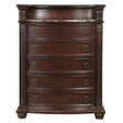 The Cavalier Collection exemplifies the finest in Old World European design inspiration. Egg and dart base moldings, bead molding, acanthus leaf carvings, and genuine marble inset top all blend to achieve an elegant addition for your traditional bedroom. The chests beautiful details are accented by the finish on birch veneer.