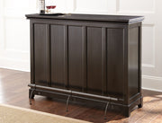 The Garcia bar will be the focal point of your entertaining space. The Garcia bar is constructed of hardwood solids and veneers in a ebony painted finish with a Silverstone composite top that resists scratches, moisture and heat. Storage is plentiful with space for both stemware and bottles. A front footrest is included and makes this a comfortable spot for friends to gather.