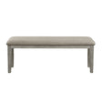 Functionality beyond the expected use of a tabletop makes the Armhurst Collection the perfect addition to your casual dining space. The wire-brush gray finish, over oak veneer, of the collection is a versatile option for your decorative preferences. The wood framed 48-inch bench with a neutral tone fabric-covered seat.