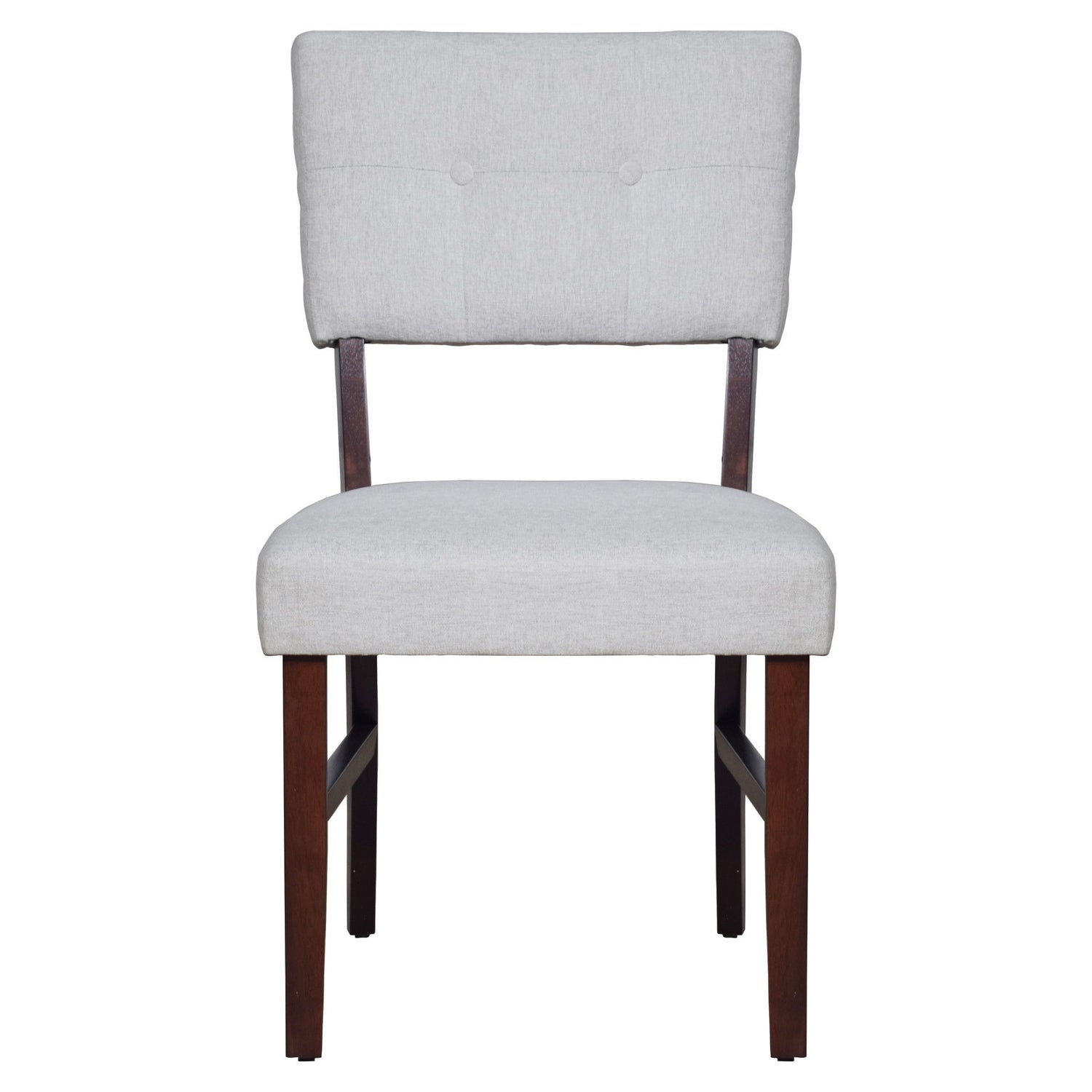 The Tioga Dining Chairs, available in sets of two, bring durable craftsmanship and modern style to your dining space. Each chair is constructed from solid Rubberwood and reinforced with base stretchers, ensuring strong and stable support. With clean lines, a minimalist approach, smooth surfaces, and geometric shapes, these chairs contribute to a sleek contemporary aesthetic. The warm Cherry finish enhances the natural beauty and grain patterns of the wood, adding a touch of elegance. Comfortable seating is assured with button-tufted padded backrests and resilient foam cushions covered in easy-care, 100% polyester fabric. Perfect for any dining room, these chairs combine style, comfort, and durability for an unparalleled dining experience.
