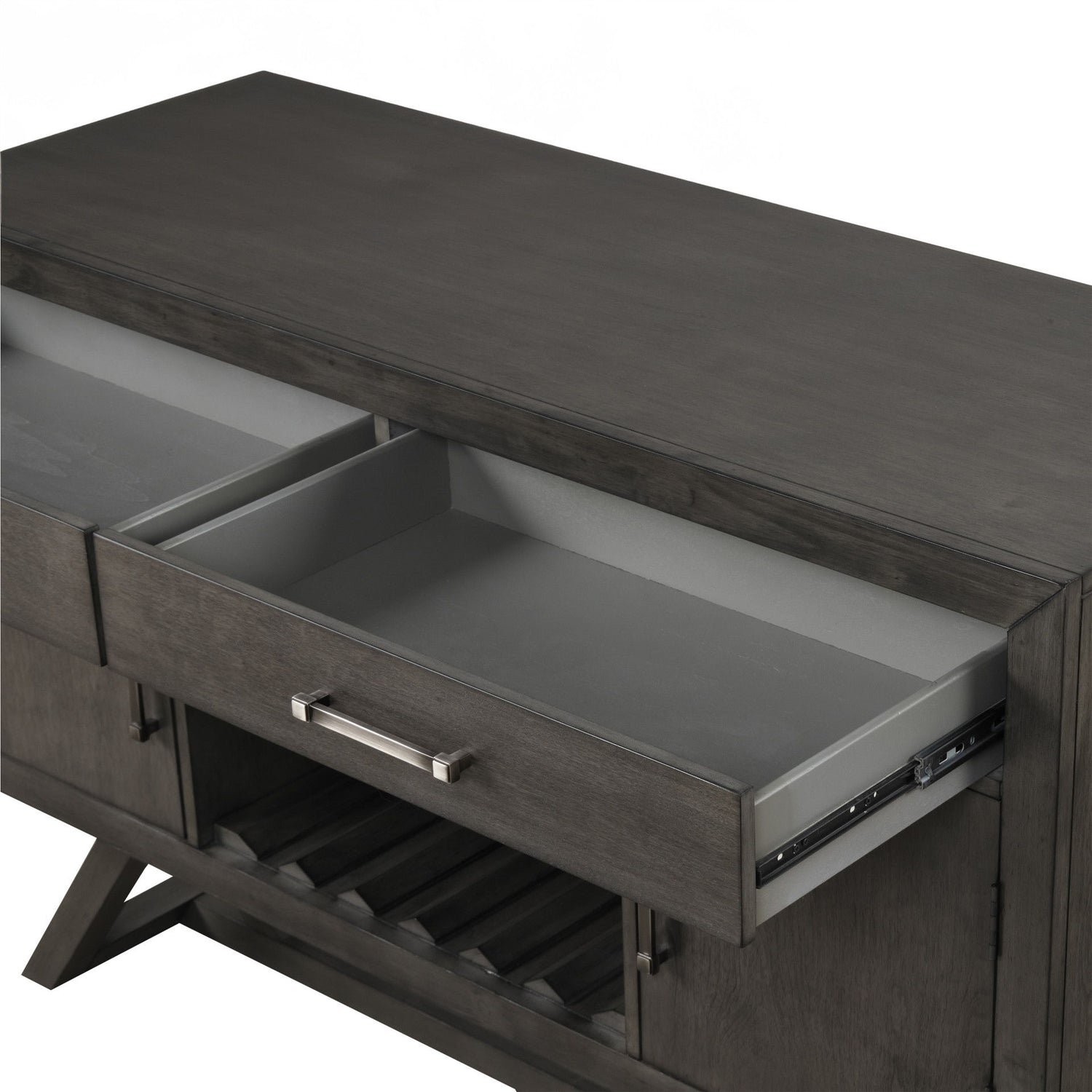 - Functional and Stylish: This versatile storage cabinet features luxurious velvet-lined drawers for flatware, spacious cabinets for serving pieces, and a built-in stemware holder and wine rack, making it the perfect centerpiece for entertaining.