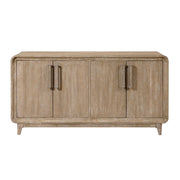 Elevate your home's organization and style with the buffet server. Crafted from a harmonious blend of oak veneer, solid wood, and engineered wood, and finished in a beautiful natural tone, this versatile server offers both aesthetic appeal and practical storage. Featuring two spacious storage cabinets, each equipped with adjustable shelves, it provides ample space to neatly tuck away dinnerware, linens, or media essentials. Its timeless design seamlessly integrates into various decor schemes, making it an ideal addition to your dining room, living room, or entryway for a touch of refined organization.