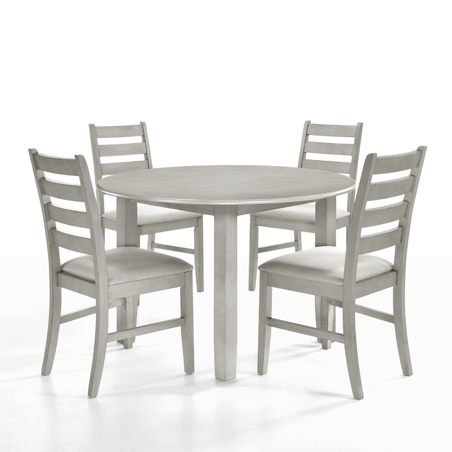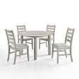 Experience the Pascal Dining Room Set featuring a round wood table and dining chairs. Crafted from a blend of solid Rubberwood and manufactured woods, this set ensures long-lasting durability. The solid wood chairs are reinforced with side base stretchers for enhanced stability. The rich, sophisticated finish is achieved through a meticulous multi-step process, highriching the natural beauty of the wood with rub-throughs and glazing. Each chair is designed for optimal comfort, with high-density foam cushions covered in easy-care 100% polyester fabric. The 47-inch round dining table provides ample space for four, making it the perfect gathering spot for intimate dinners and game nights. The Pascal set’s design is versatile, featuring subtly rounded edges, tapered legs, and elegant ladderback chairs that blend seamlessly into transitional, farmhouse, and contemporary decor styles. This dining set offers both comfort and timeless elegance, making it a beautiful addition to any dining room.