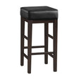 Transitional styling paired with versatility of selection makes the Pittsville Collection a perfect addition to your homes casual dining spaces. Whether pairing with a table that you already have, adding seating to your countertop or casual entertaining space, the 29-inch pub height stool will be the perfect fit. The square faux leather seat is paired with wood framing for decorative versatility.