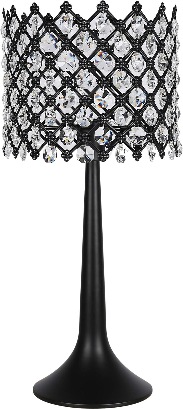 "Crystal Lattice Radiance" Metal And Crystal Table Lamp (Set of 2) - Matt Black / Clear Crystal