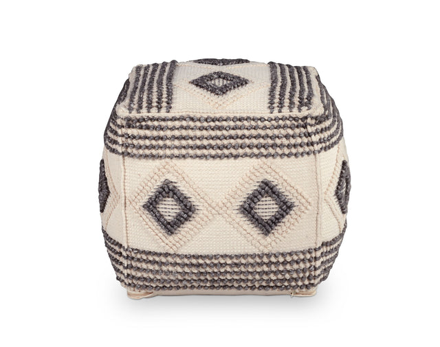 Dalia - Square Handwoven Woolen Pouf - Beige