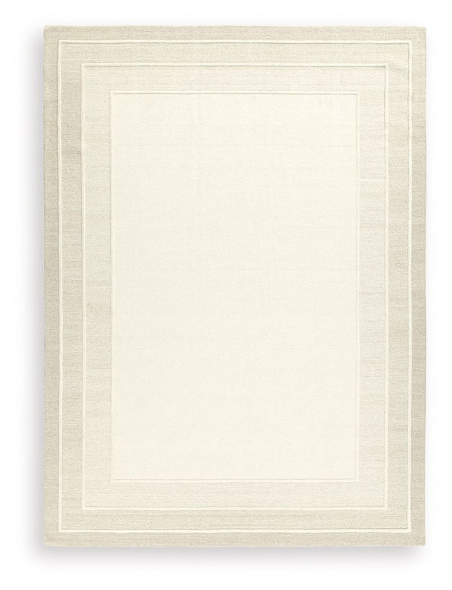 With its simple border design and soft, neutral color palette, this hand-tufted rug brings a touch of casual elegance to your abode. Its plush wool pile feels luxuriously soft underfoot—perfect for adding warmth and texture to your entertainment area, bedroom or entryway.