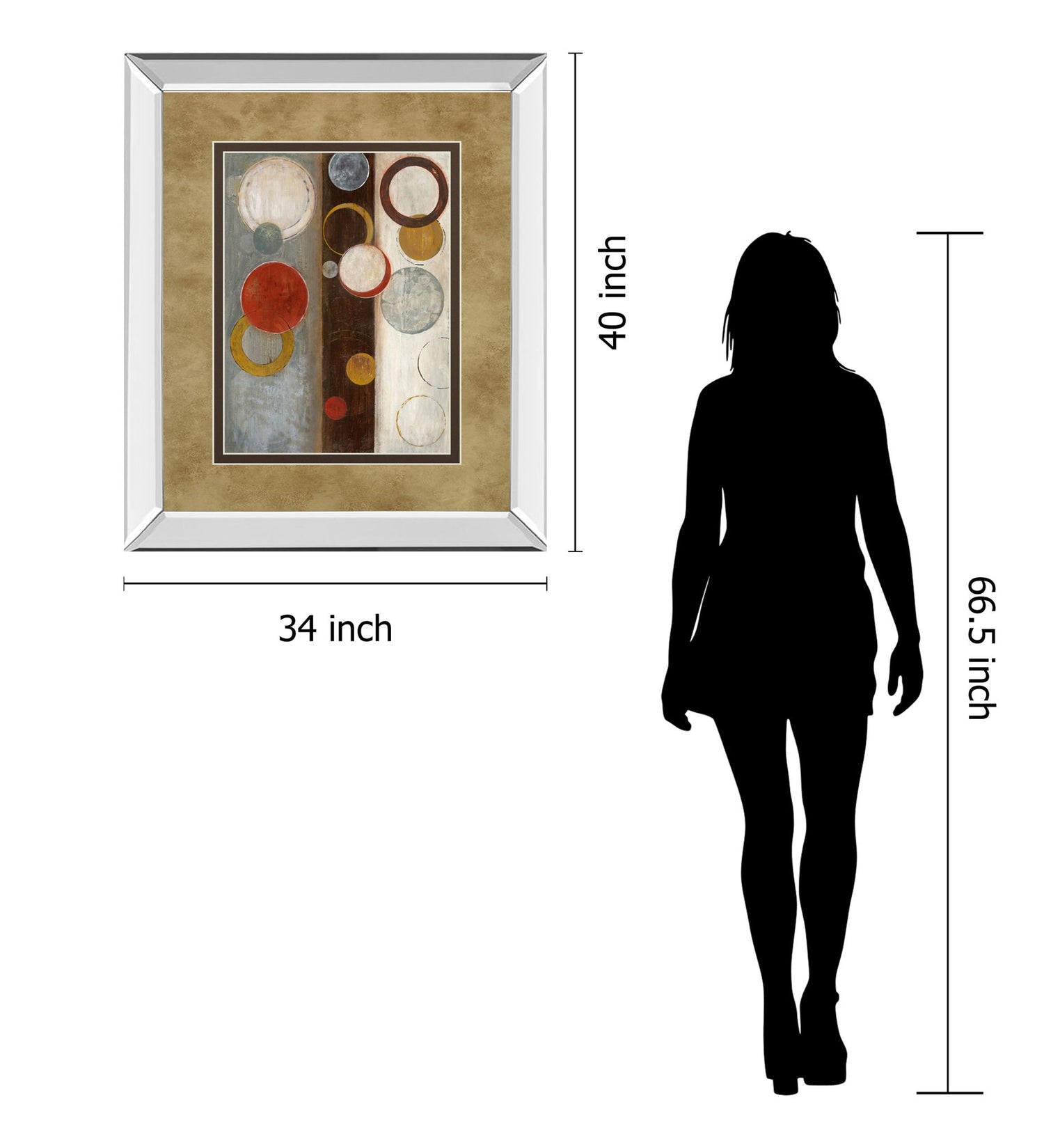 Immerse yourself in the captivating rhythm of "Crescent Harmony," where abstract circles in warm reds, golds, and muted grays create a dynamic interplay of color and form. This vertical piece is elegantly set within a 2.5-inch mirrored frame that adds a subtle reflective glow, enhancing the artwork's depth and sophistication. The double-matted beige finish offers a polished gallery-style presentation, while premium real glass protects the mixed media composition, preserving its vibrant hues. Perfect for living rooms or office spaces, this framed wall art brings a refined modern elegance and artistic dimension to your decor, inviting contemplation and admiration.