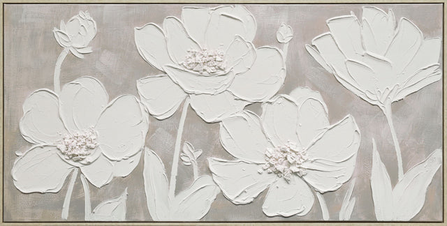 "Textured Blossoms" Hand-Painted Canvas In Frame - White / Gray