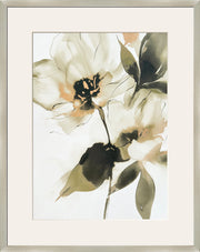 "Whispering Petals I" Framed Canvas Under Acrylic - Beige / Cream / Olive