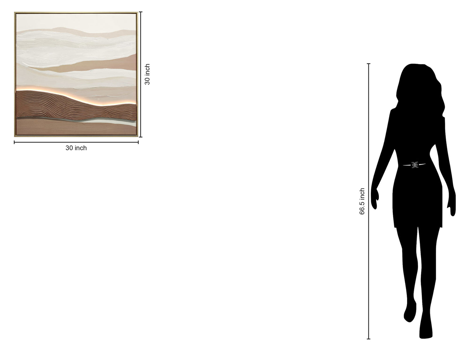 "Desert Glow II" Hand-Embellished LED In Frame - Beige / Brown / White