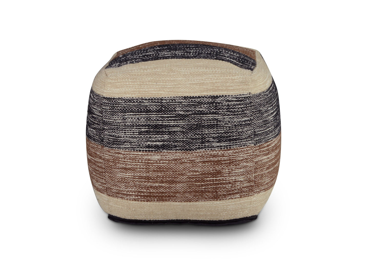 Kick up your feet with these handwoven pieces of fun! Poufs are great as a footrest, for extra seating or even to use as a pillow when laying on the floor. These stuffed, upholstered pieces are versatile and feature custom designs on each piece. The Jamal features a hand-woven tri-colored stripe on top and sides in earth colors for a natural flair to any living room. Jamal softens a room while adding comfort and functionality to your style.