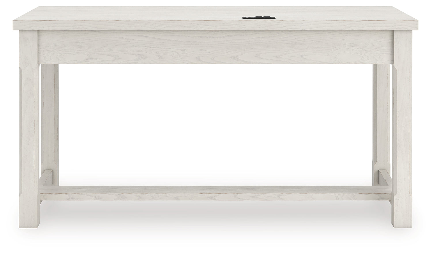 - Antiqued white finish with wood grain texture