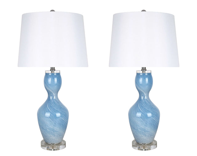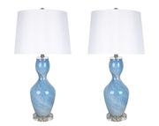 "Azure Elegance" Art Glass Table Lamp (Set of 2) - Blue Art Glass