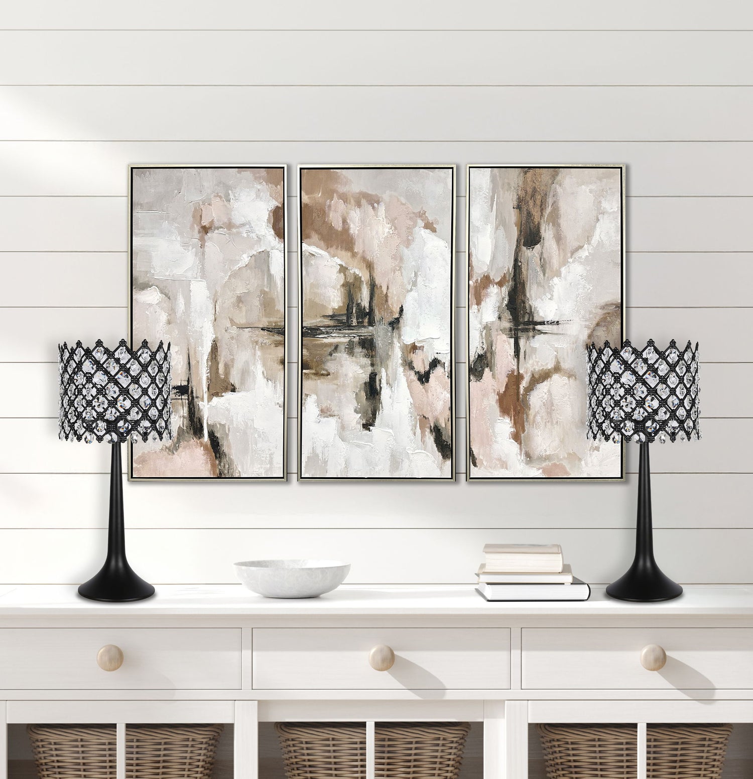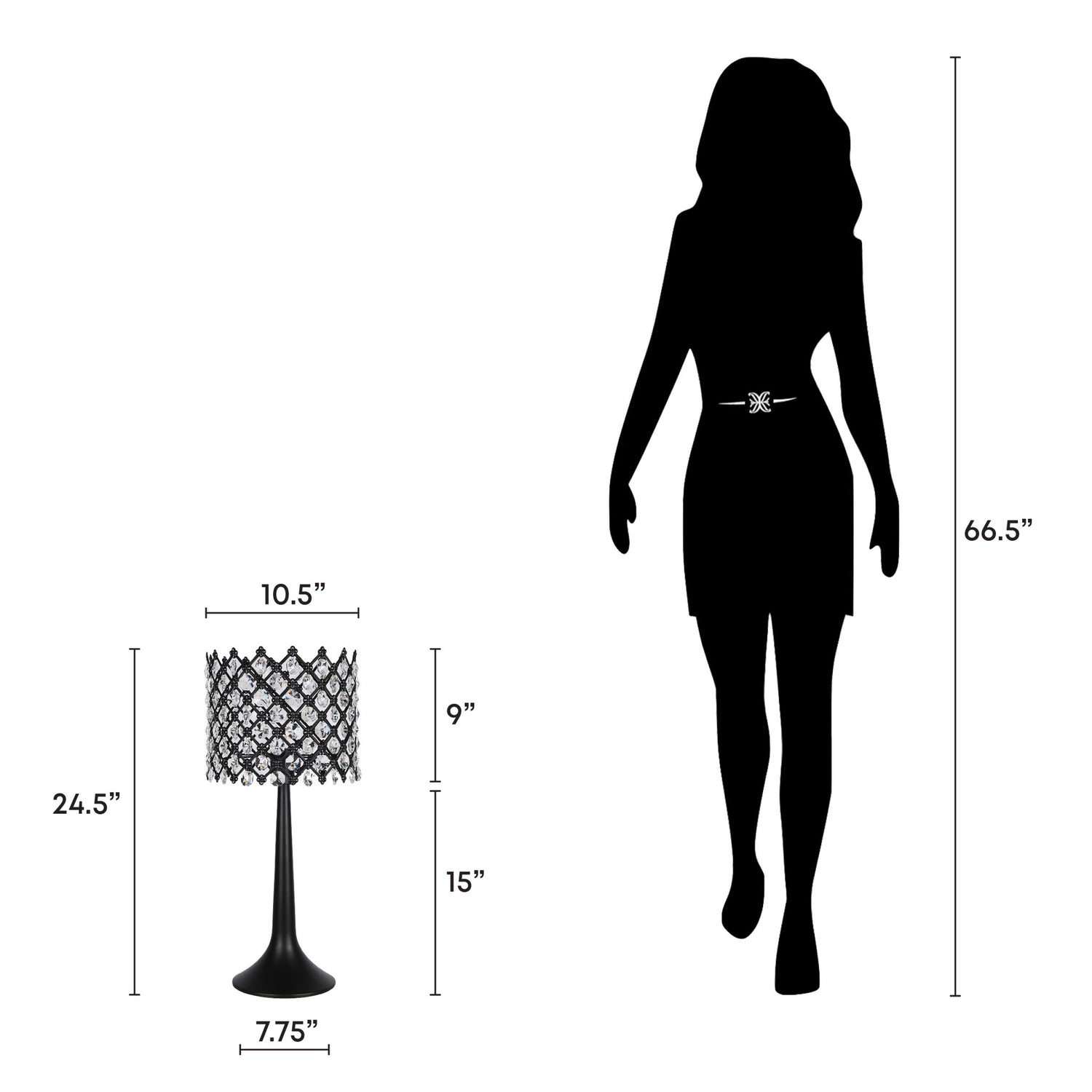 - Sleek matte-black base with crystals elevates any room instantly.
