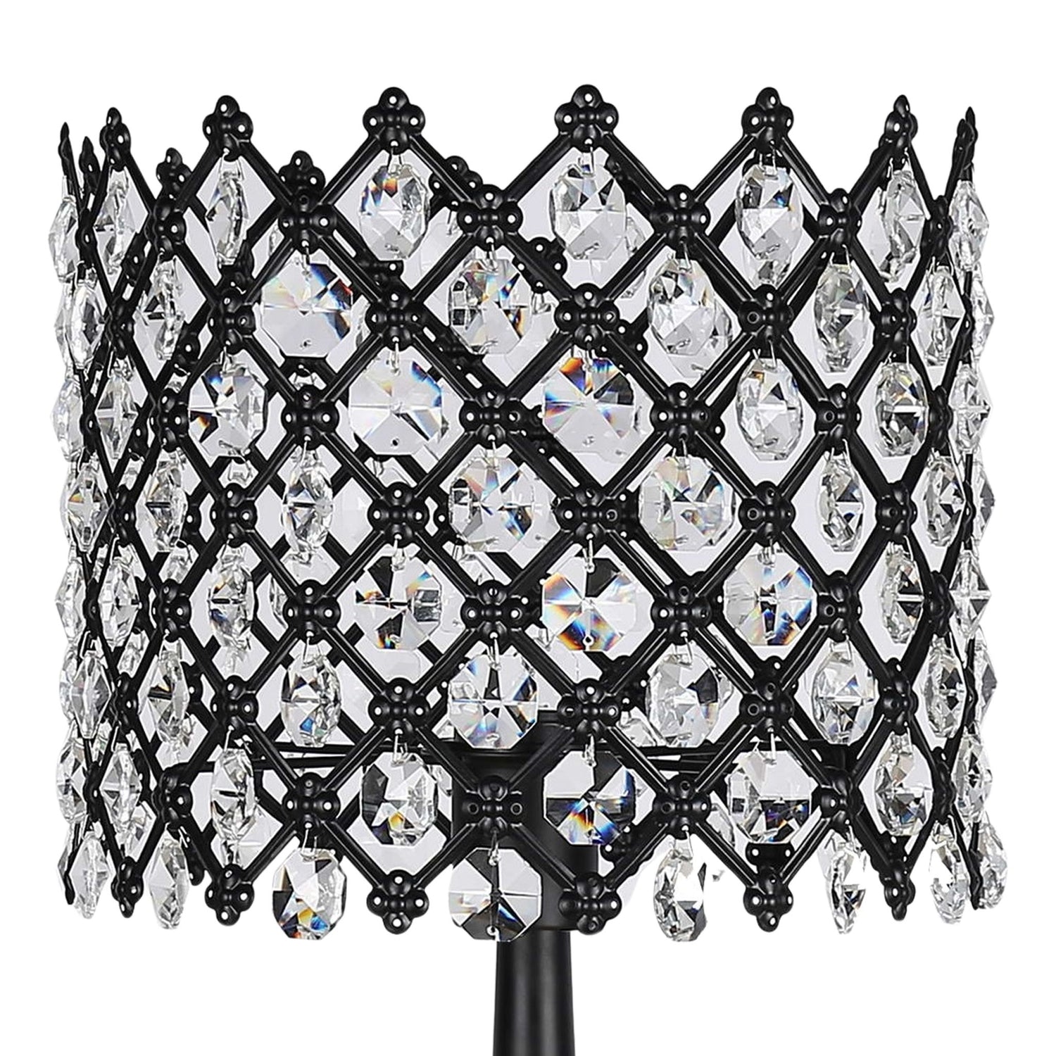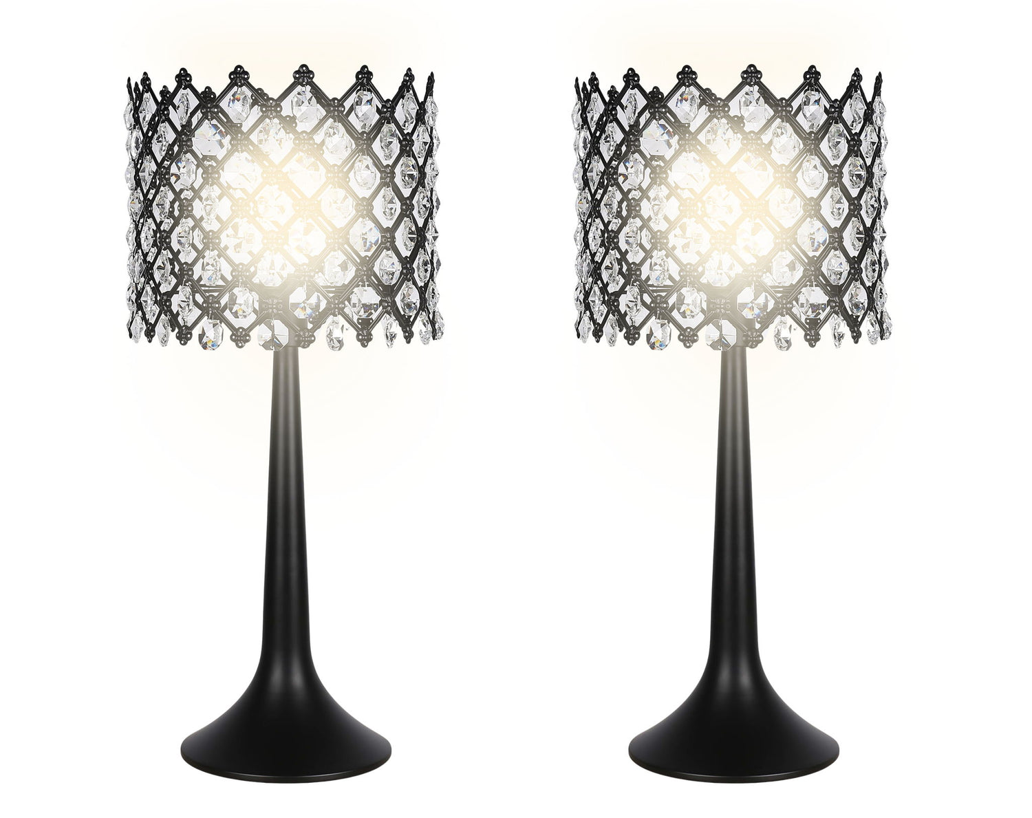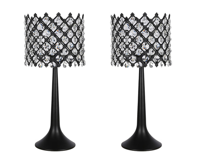 "Crystal Lattice Radiance" Metal And Crystal Table Lamp (Set of 2) - Matt Black / Clear Crystal