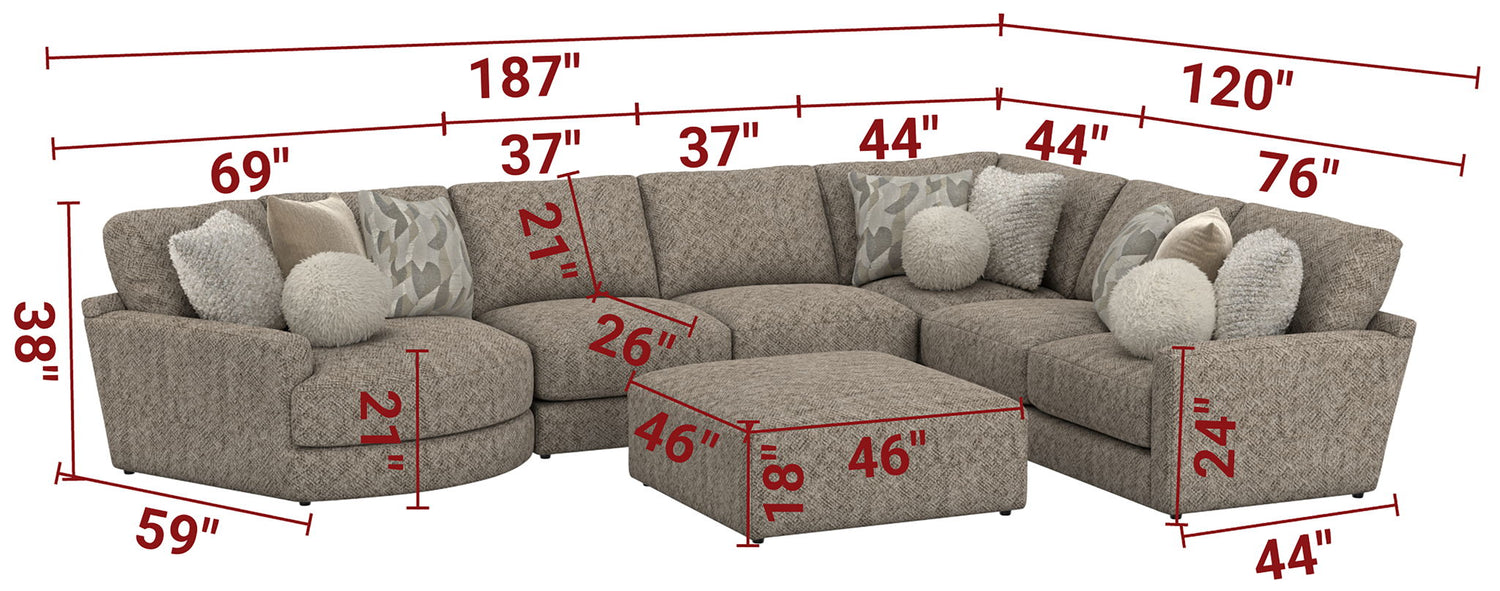 Mushroom / 5 Pc. Right Side Facing Cuddler Sectional, Ottoman