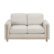 This contemporary loveseat, featuring a clean design with exposed solid wood framing and comfortable textured fabric, is the perfect addition to smaller living rooms, apartments, or cozy spaces, offering both sophisticated style and intimate seating. Built with a robust solid wood and plywood frame, high-density foam padding over pocket coils, and elegant natural-finished solid wood legs, this loveseat ensures lasting durability and a plush seating experience. With convenient features like reversible back cushions and removable zippered covers, it's not just a beautiful piece but also a practical one, designed for easy maintenance and a consistently fresh look.