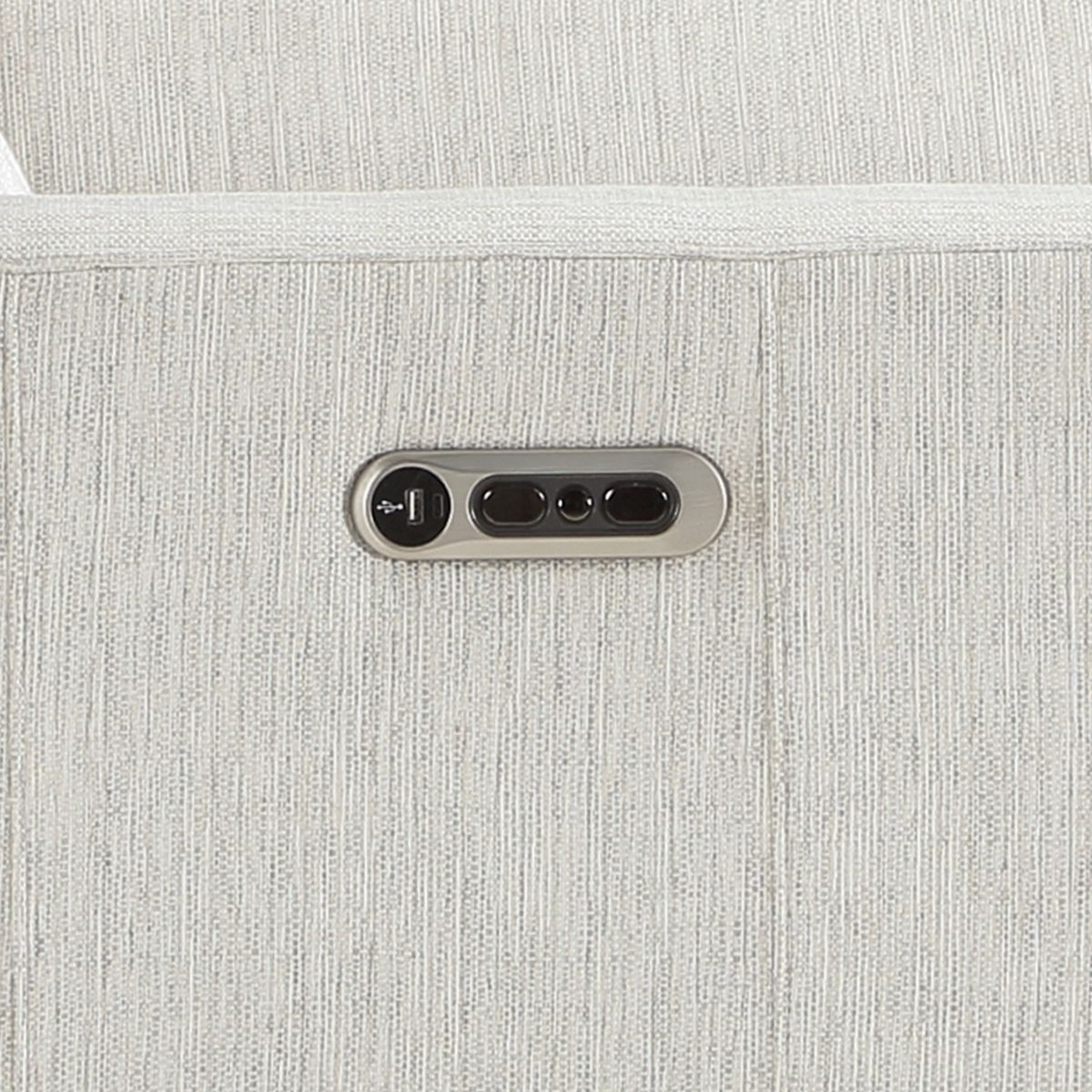With an expanse of seating to fill your living room, the Salida Collection lends modern style, function, and comfort to your home. Hemp white textured fabric upholstery covers the collection, its light hue an airy palette for your decorative preferences. Power-enhanced reclining functions support ease of movement for the power armless chair, power left and right recliners, while the corner unit anchors the sectionals seating expansion, and the armless chair provides movement-free seating. The seating profile of the collection features knife-edge tailoring, and contour stitching, each element lending to the modern aesthetic.