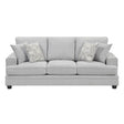 Unwind in modern style and comfort with this spacious sofa, a cozy centerpiece for your living room. Upholstered in a soft, textured chenille fabric, this sofa is built for durability on a robust plywood frame with a dependable 300lbs weight capacity per seat. It offers plush relaxation thanks to the supportive foam padding over pocket coils. Designed for easy upkeep, it features reversible back and seat cushions with removable, zippered covers, and comes complete with four pillows to instantly elevate your decor.
