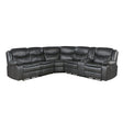 Designed to provide ample seating in your casual living room, the Fargo Collection utilizes a blend of comfort and function to create a perfect spot to chill out. The center seating unit is flanked by the dual power reclining seats of the right-side unit - its center console featuring cupholders, hidden storage, USB ports, and receptacles and the left-side love seat with an end power recliner and stationary seat. Dark gray breathable faux leather covers the plush seating of the sectional.