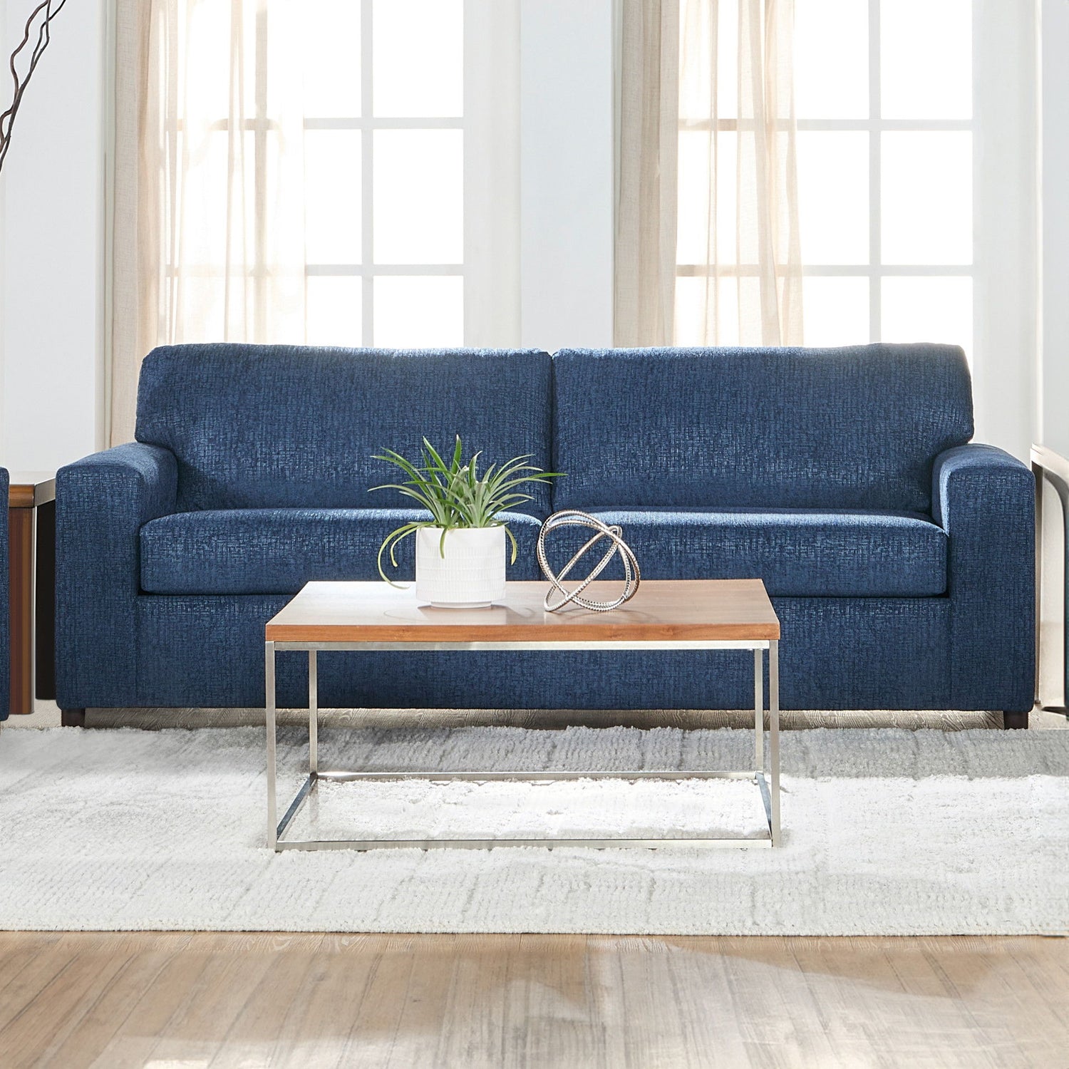 Meet the Kylo 3-Seater Sofa, a versatile addition to any living space. With its transitional style and upholstery, this sofa effortlessly complements a variety of decor themes. The Kylo is made in the USA and features square arms and an attached back cushion for clean and modern look. Sink into the comfort of its 1.9 density full foam cushion with Dacron wrap, supported by a solid and manufactured wood frame with reinforcing corner blocks and sinuous springs. The two over two cushion style ensures a balanced and inviting seating experience. Whether entertaining guests or lounging with loved ones, the Kylo 3-Seater Sofa is sure to become the centerpiece of your home.