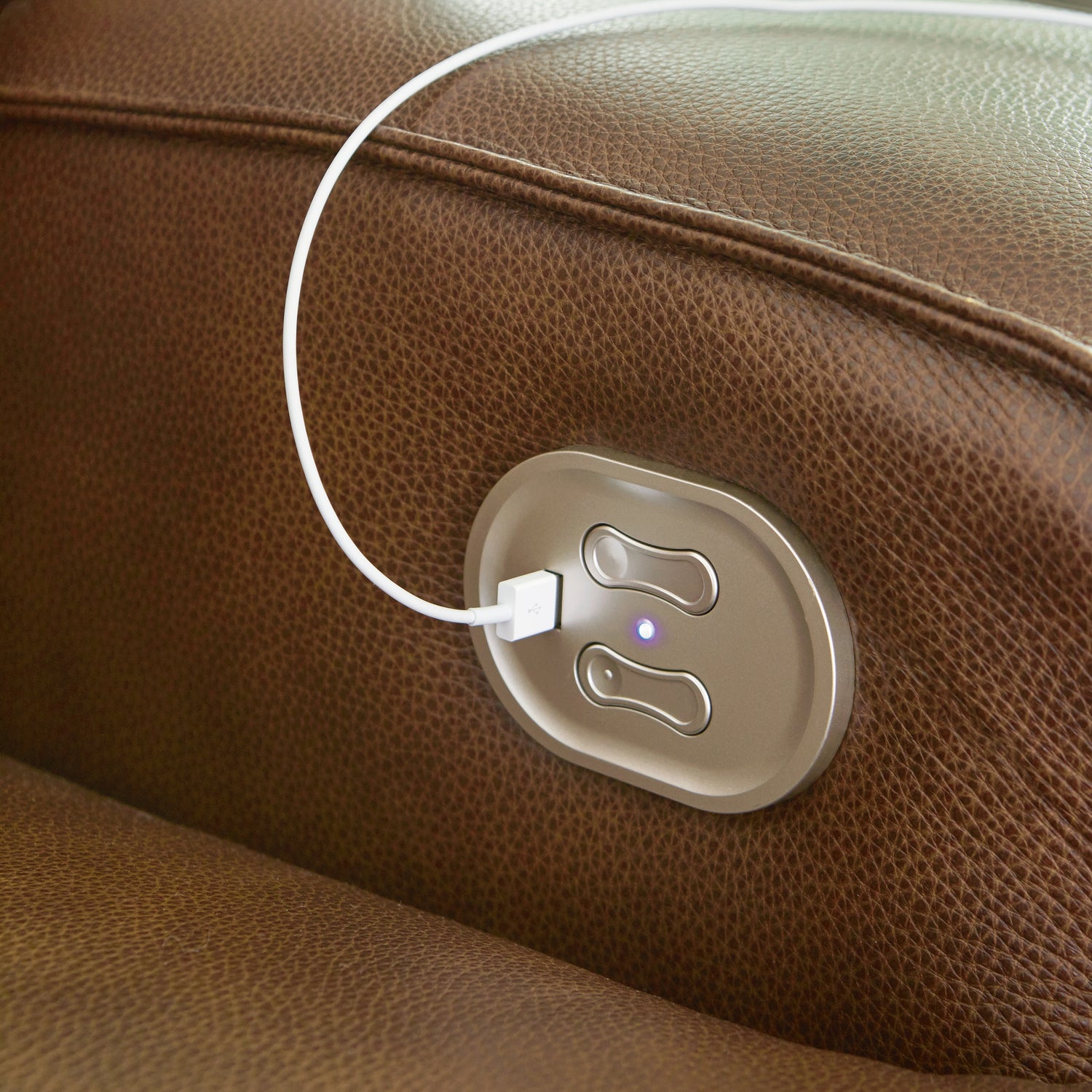 Master statement-making contemporary comfort with this power reclining loveseat. It displays a striking yet streamlined profile, with expertly matched leather and faux leather upholstery in an auburn hue balancing natural beauty and refined design. Adjustable headrests and USB charging polish off this richly crafted piece.