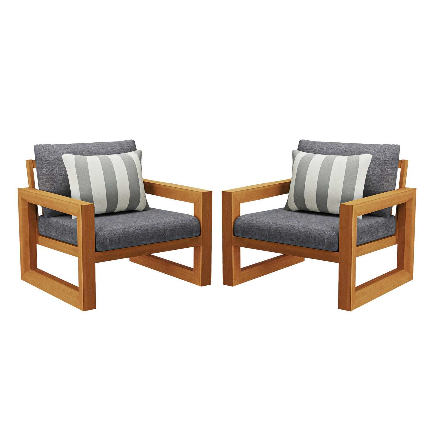 Bristol - Bay Wood Patio Club Chair With Cushions - Natural / Brown / Gray