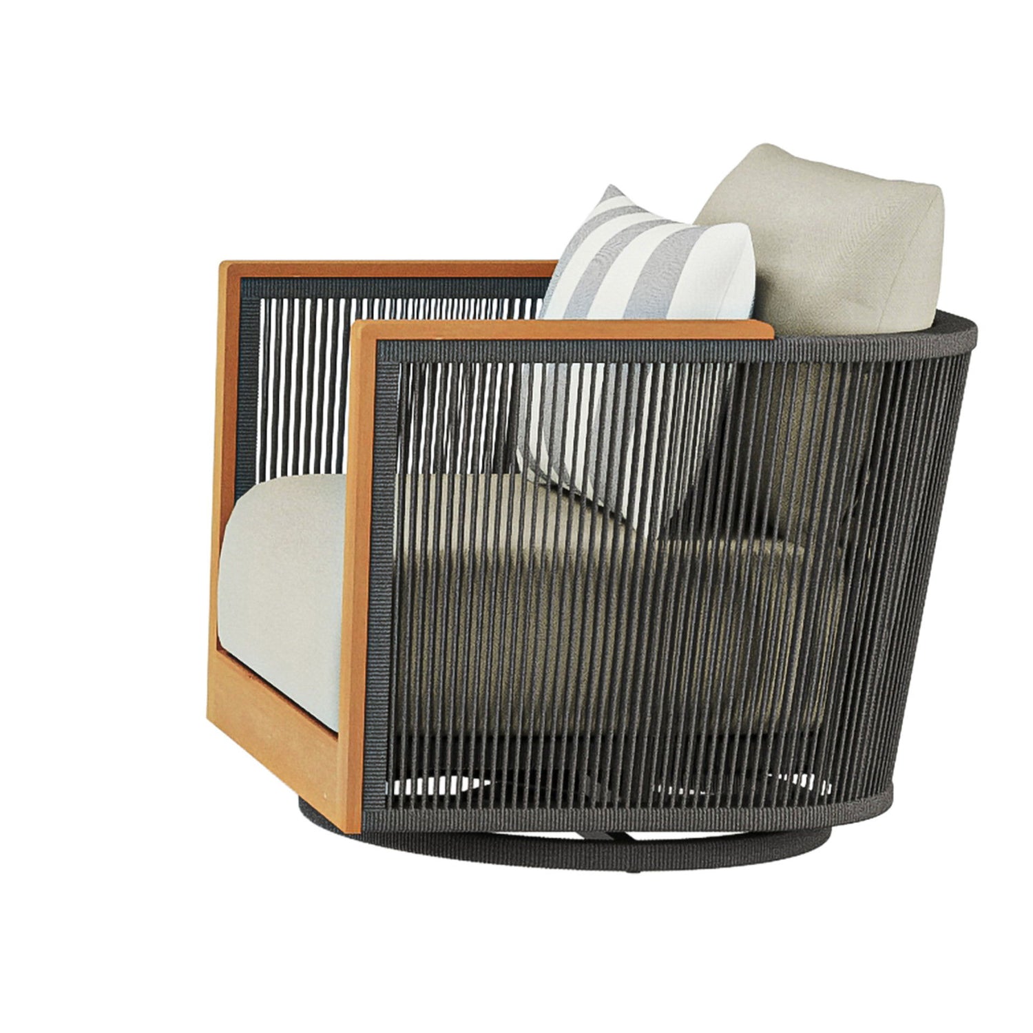 Veranda - Wicker & Wood Swivel Patio Club Chair With Cushions - Natural / Gray / Brown