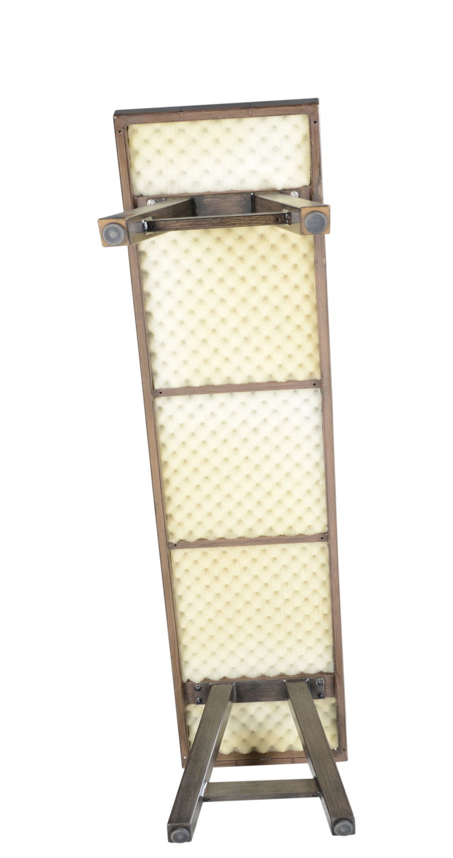 - Powder-coated aluminum top with a faux-plank treatment and sound-proof foam under table top