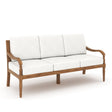 The Savannah Outdoor Sofa combines traditional charm with lasting outdoor comfort. Built from FSC Certified Acacia solid wood, it features a light finish that highlights the natural grain. Cushions in white linen-look fabric are filled with 16cm high-density foam and wrapped in weather-resistant, solution-dyed polyester to resist fading, moisture, and mildew. With turned legs, curved arms, and graceful lines, this sofa brings Southern-inspired style to your patio.
