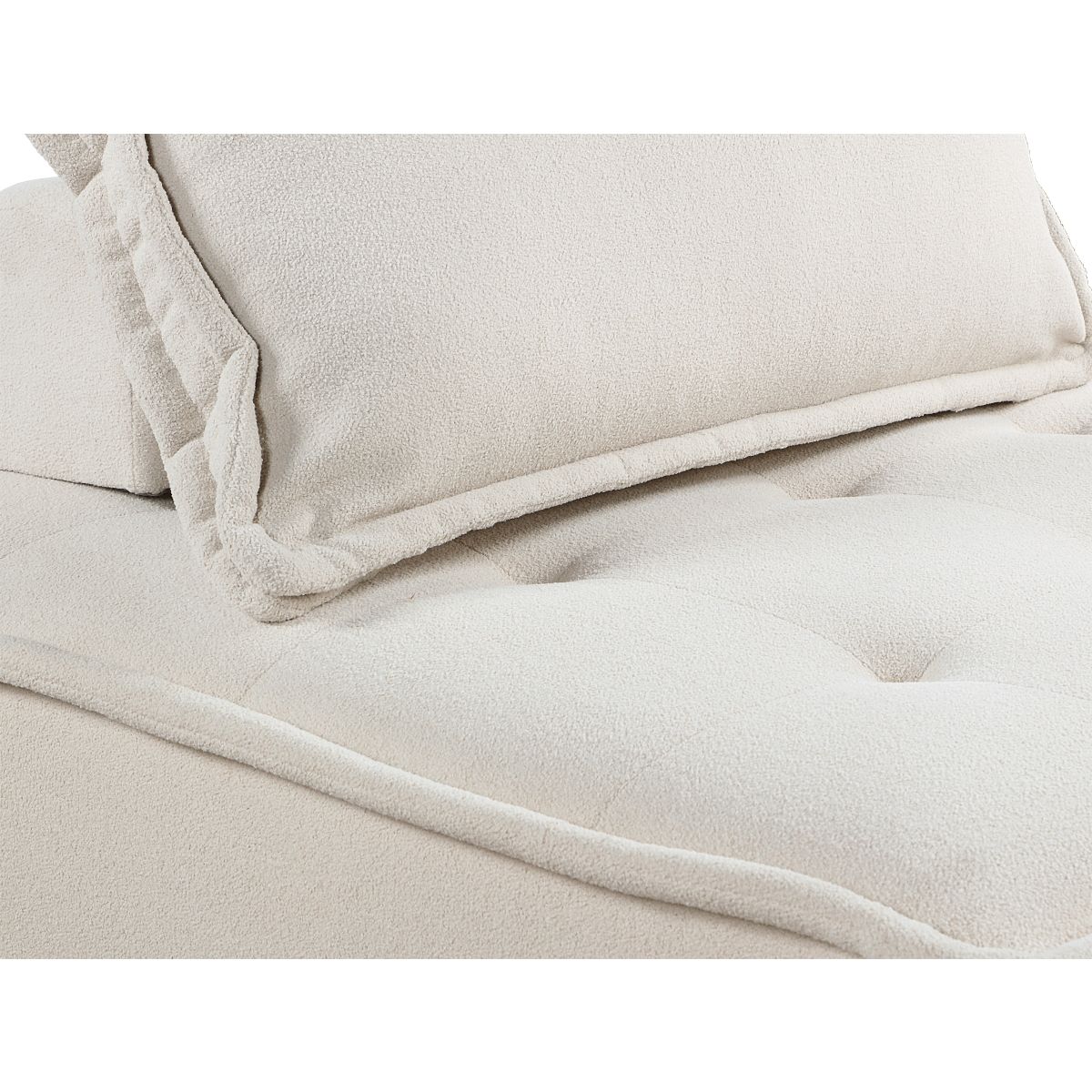 With a look that presents the hallmarks of modern design and allows for functional placement within your living room, the Inman Collection is a perfect seating option for your familys needs. Seven square ottoman-style modular accent chairs are paired for a custom sectional seating configuration perfect for your available space or occasion needs. Beige boucle fabric upholstery covers the collection. The low-profile stance of the chair lends to the modern profile while the zipper-paired pillow and bolster provide supporting accent.