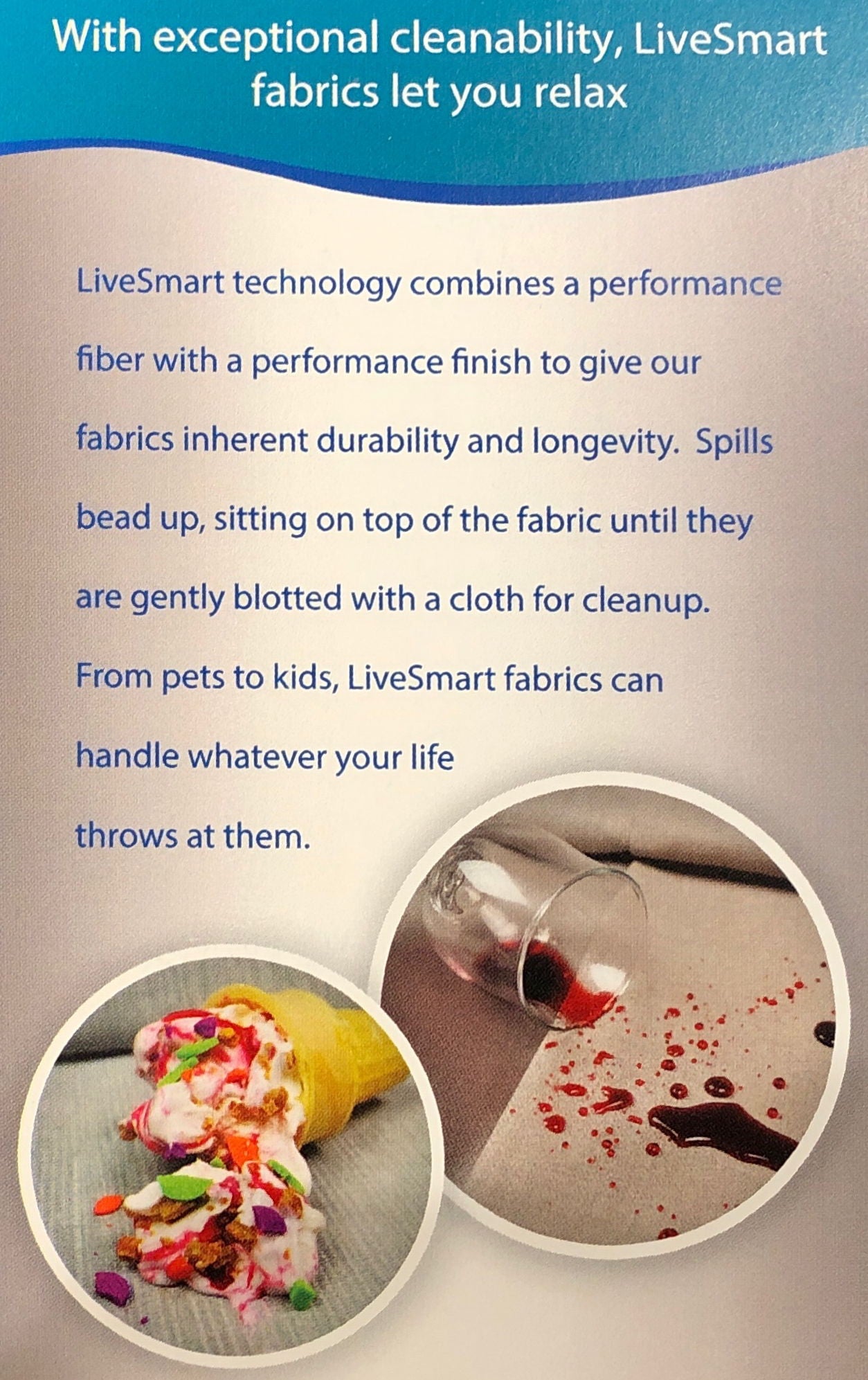 The Posh collection is the ultimate in casual comfort. Constructed with pillow soft reversible seat tops with the spring system integrated into the base for added support and comfort. Steel Tech framing is used to add strength to frame. The Posh collection is covered in soft, 100% polyester fabric with LiveSmart technology. LiveSmart combines a performance fiber with a performance finish to give the fabric inherent durability and longevity. Spills bead up, sitting on top of fabric until they are gently blotted with a cloth for cleanup. From pets to kids, LiveSmart fabrics can handle whatever your life throws at them. LiveSmart is moisture repellent, stain resistant, designed for heavy duty wear, and a barrier protection to keep your fabric clean.