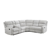 Sink into ultimate comfort and style with the reclining sectional with console, a three-piece centerpiece designed for luxurious lounging and effortless entertaining in your living space. This expansive sectional features plush chenille fabric upholstery that invites relaxation, while the manual reclining mechanisms on both ends allow you to effortlessly find your perfect angle for unwinding after a long day. The convenient console nestled within the left-side facing loveseat offers two cup holders and hidden storage, keeping your essentials within easy reach. Built with a sturdy plywood frame featuring a metal-reinforced seat and supportive foam padding over pocket coils, this sectional promises lasting durability and exceptional comfort for you and your loved ones.