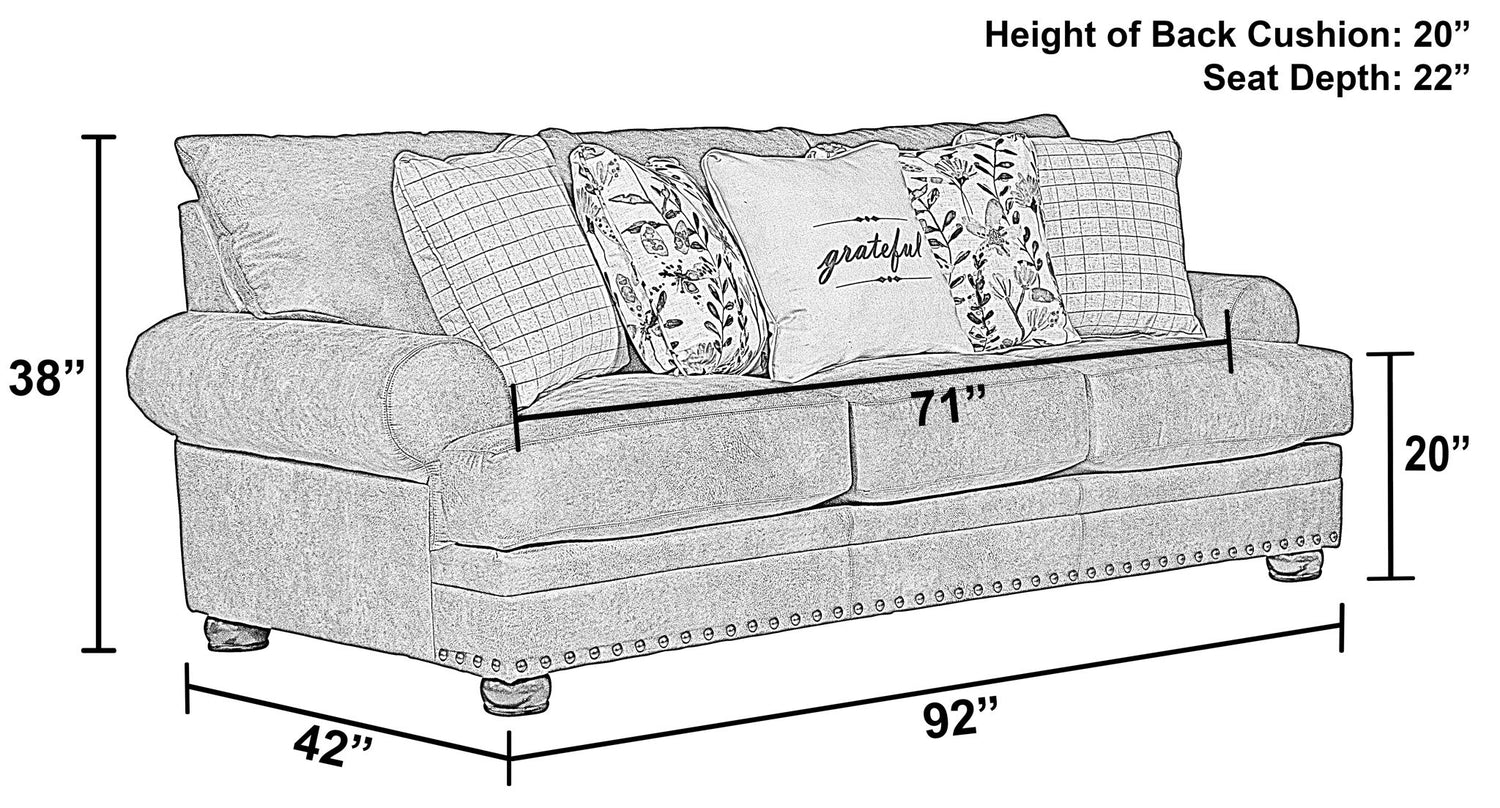 Time for a new sofa. Why not do it with style! The contemporary farmhouse casual look of the Briarcliff will be the envy of all your friends. The Briarcliff sofa is covered in a soft and durable polyester fabric accented with 5 accent pillows and individually placed pewter nailheads along the base. The extraordinary style wasn't at the expense of comfort. Seating constructed of individually pocketed coils encased in foam and topped with a layer of cool gel infused memory foam creates supportive and comfortable seat that will outlast all foam seat cushions.