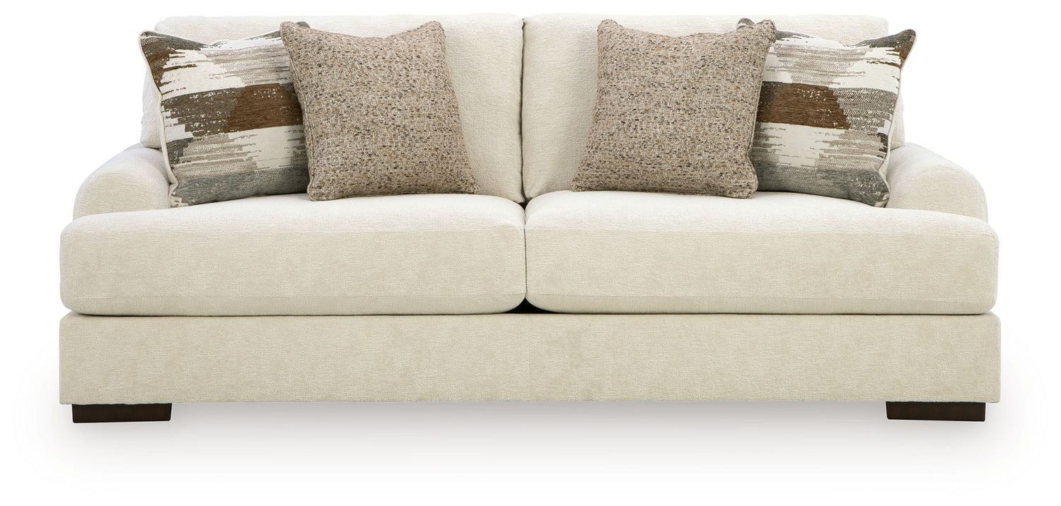 Sink into the captivating comfort of this sofa. Its plush reversible cushions invite you to stretch out, making it an ideal spot for movie nights, afternoon naps or catching up with friends. Softly curved arms add a lovely sense of flow, while velvety soft upholstery in a warm hue pairs effortlessly with a variety of color palettes for an easy pulled-together look. Accent pillows add texture and pattern, so your space feels stylish as well as incredibly cozy.