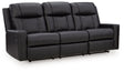 Classic, versatile and comfortable in every sense. This reclining sofa is designed for everyday relaxation. Sleek faux leather offers a soft, supple feel that’s easy to maintain, while one-pull reclining makes unwinding effortless. Complete with a goes-with-anything caramel hue, it’s a beautiful blend of style and practicality.