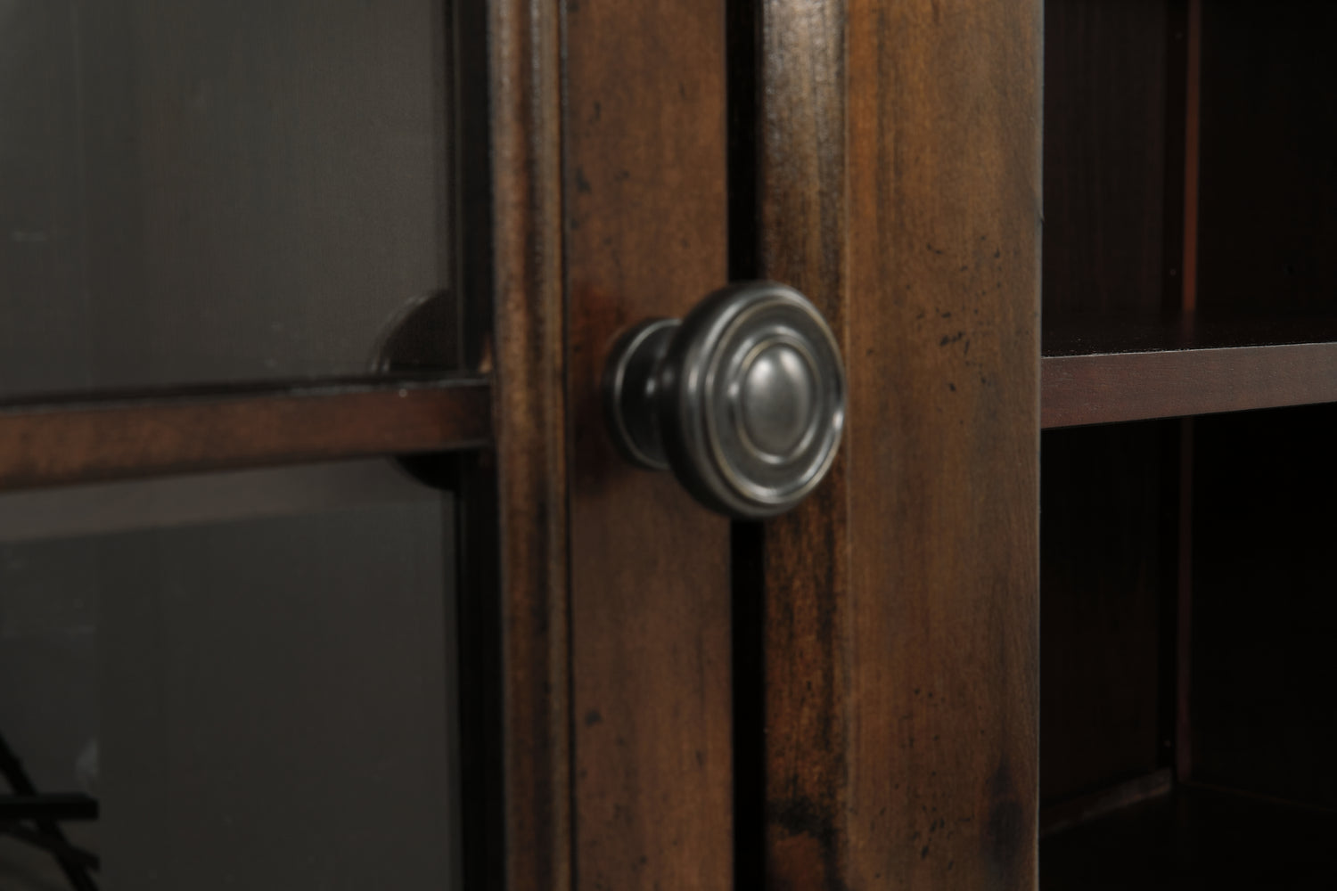 The beauty of this TV stand will immediately engage you. The slight breakfront shape is a rare find and an ideal fit among traditional and eclectic tastes. Soft black undertones highlight the warm finish. Multiple cubbies and glass-door enclosed shelves organize your audio/video components and plenty of extras. Sold separately, an electric fireplace fits neatly in the center cubby.