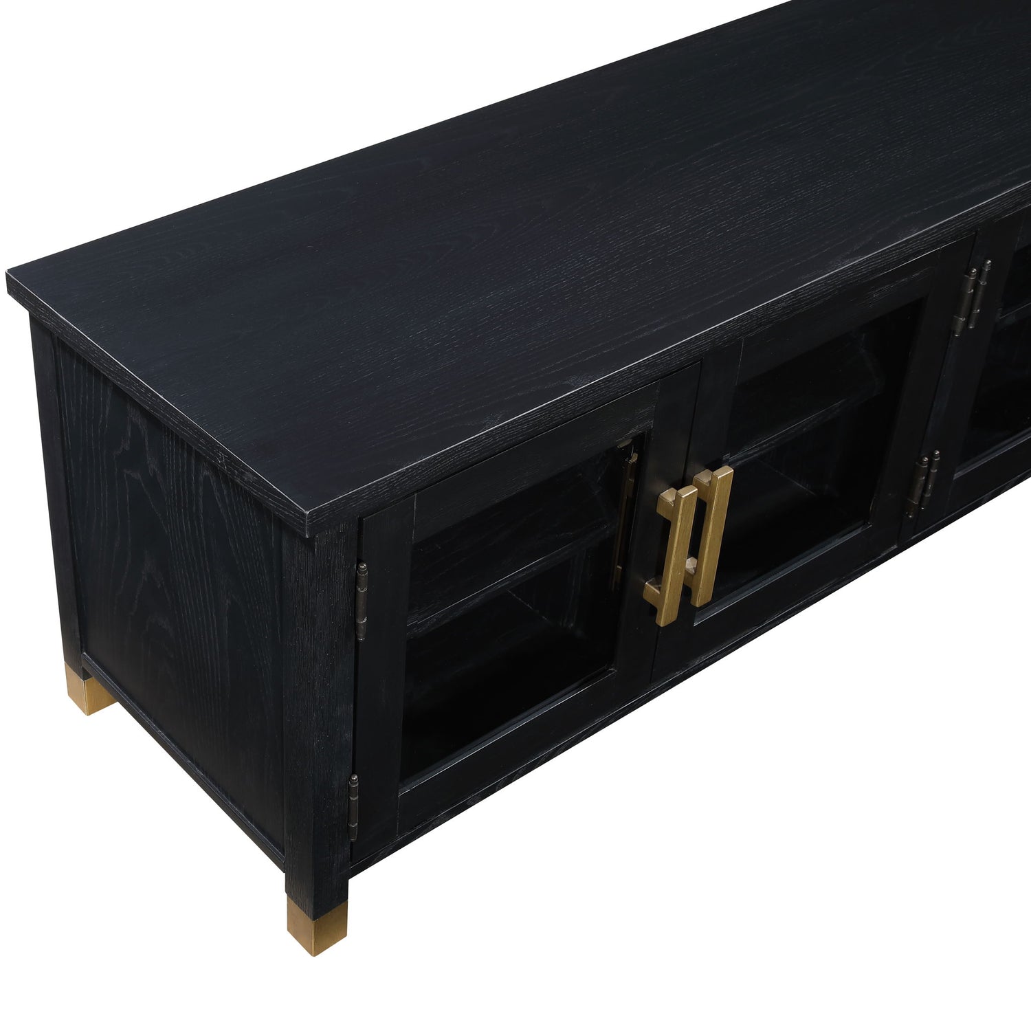 • Optimal TV Viewing: Its low-profile design is crafted for the ideal TV viewing experience. Perfectly sized at 64 inches in length, it holds up to a 75-inch television with grace. Glass doors allow for effortless remote control of electronics in the cabinet.