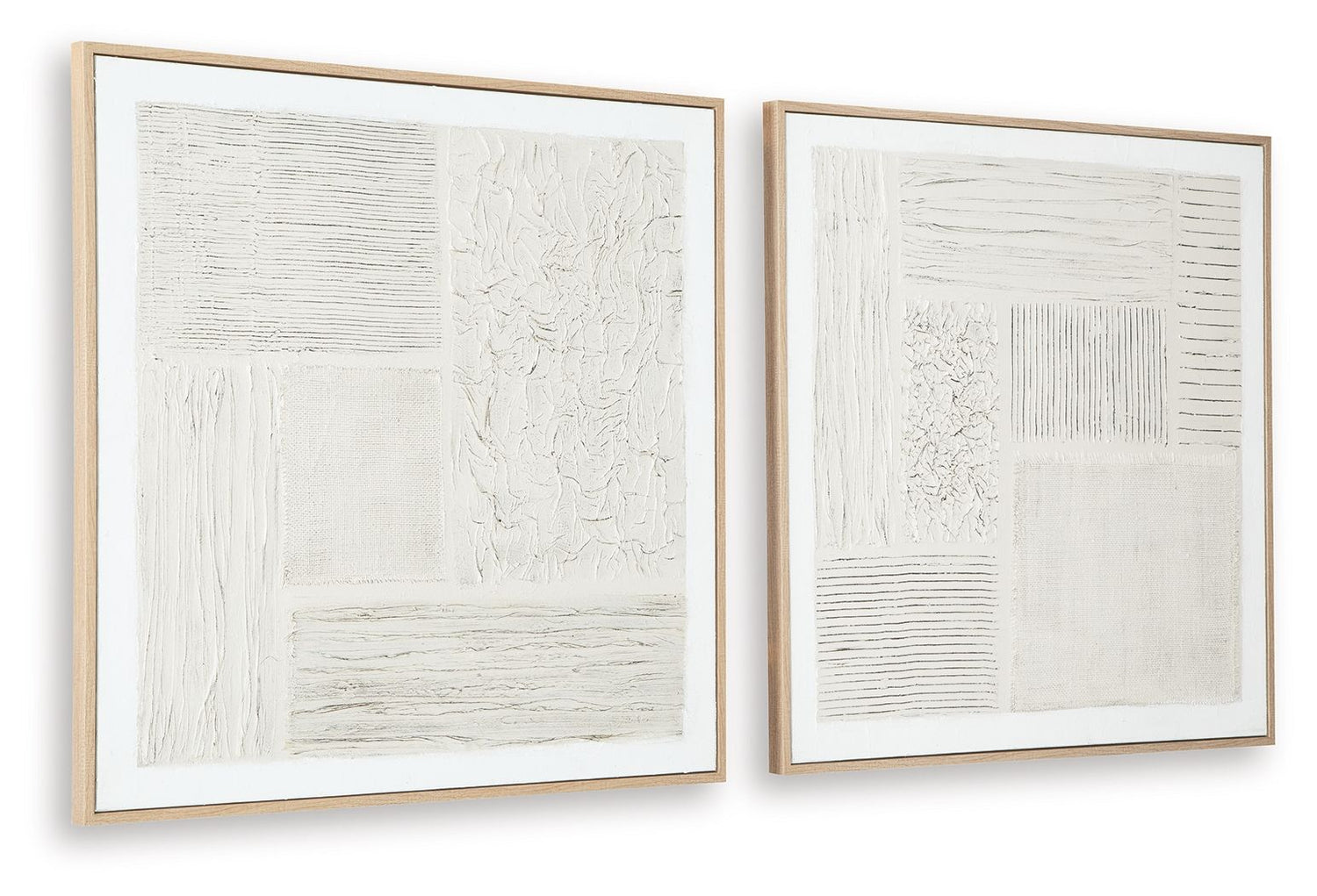 This subtly dynamic wall art duo lends an air of movement to your decor. Neutral hues, meticulously crafted with hand painted details, come together in an abstract geometric design. Layered fabric embellishments add textural appeal. Stage the pieces together or separately—with multiple hanging options, this set is easily styled to suit your space.