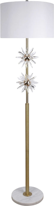 "Crystal Bloom I" Metal And Crystal Floor Lamp - Soft Gold / Clear Crystal / White Marble