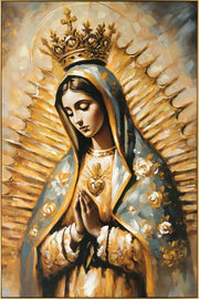 Experience the serene beauty of 'Divine Serenity,' a captivating oil painting that embodies grace and tranquility. This Hand-embellished masterpiece features a divine figure adorned with golden hues and intricate details, making it a perfect focal point for any room. The framed artwork's vertical orientation enhances its majestic presence, inviting a sense of peace and reflection.