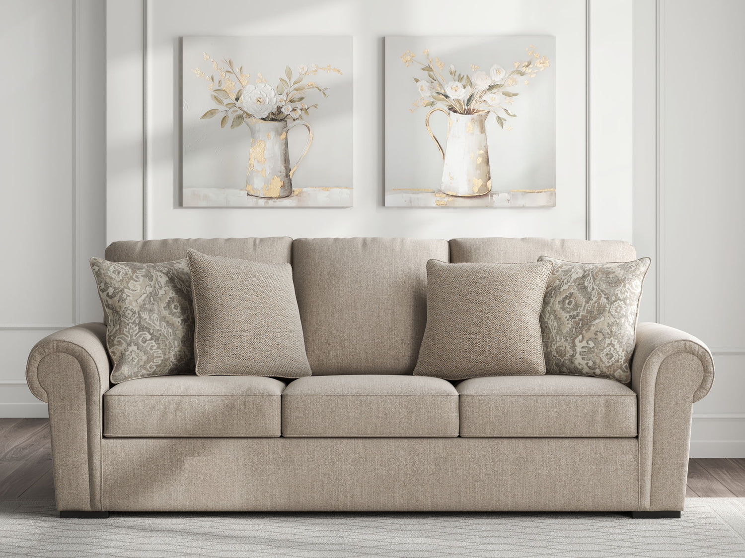 Looking for that perfect blend of timeless and cozy? This sofa delivers both, with classic roll arms and soft chenille upholstery that feels like a warm hug. There's plenty of space to curl up with a good book or stretch out for an afternoon nap. This casually cool couch is perfect for anyone who loves traditional style but doesn't want to sacrifice modern-day comfort.